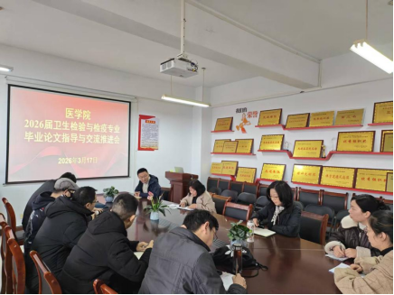 为保障首届卫生检验与检疫专业毕业生毕业论文质量,推进毕业环节工作落地,卫生检验与检疫教研室于3月17日,在A14-305会议室召开2026届毕业生毕业论文指导与交流推进会。会议由教研室主任史柯主持,全体毕业论文指导教师参会。